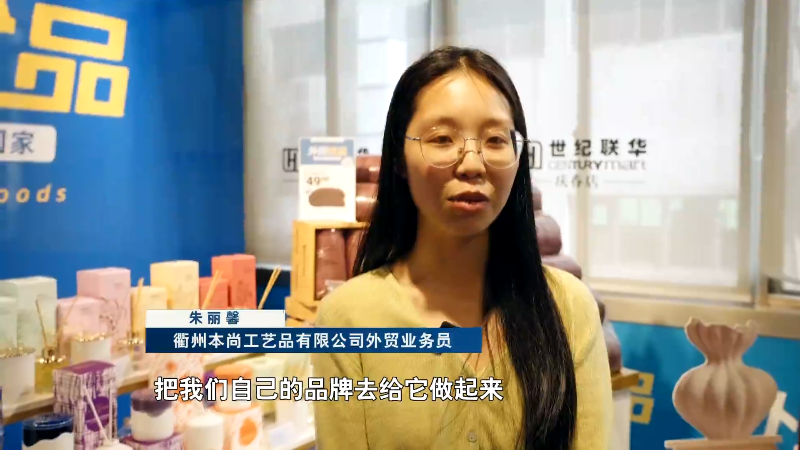 衢州本尚工艺品无限公司外贸营业员朱丽馨:把我们本人的品牌去给它做起来,有很大的等候,国内市场也有很大的潜力。