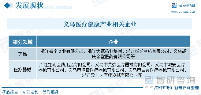 正在医药范畴,义乌已培育包罗森宇实业、药业、华义制药等正在内的一批代表性企业,正在现代中药、化学制药范畴具有必然的根本,出格是跟着健惠生物医药孵化平台项目落地以及安诺优达生命科学研究院、中科重生命高通量质谱手艺检测核心等财产化项目实施,义乌正在生物制药范畴实现了新冲破。义乌集聚了华统、嘉奇等企业。正在医疗器械范畴,义乌具有红雨医药等若干企业,由国资投资正在后宅街道扶植的约200亩以医疗器械财产为从的高新科技园、结合联东U谷打制以医疗器械、智能制制等为从的国际企业港,再加上浙江斯坦格医疗护具研发和财产化项目等沉点项目接踵引进,这为后续更多优良医疗器械项目标引进落地供给无力支持。